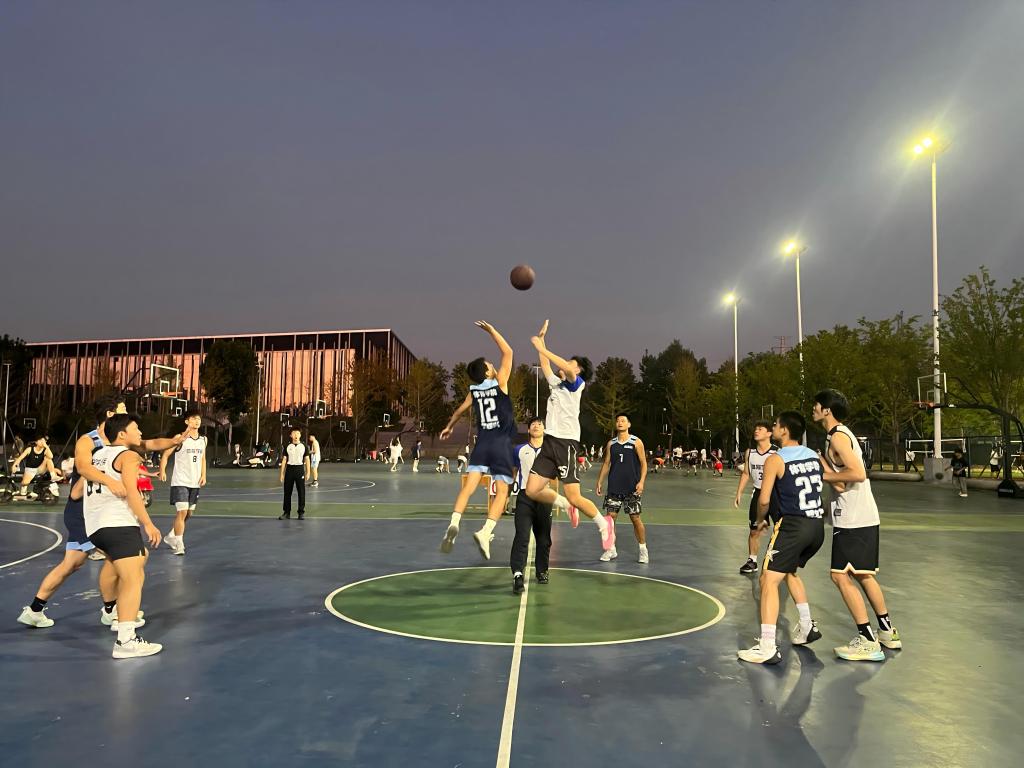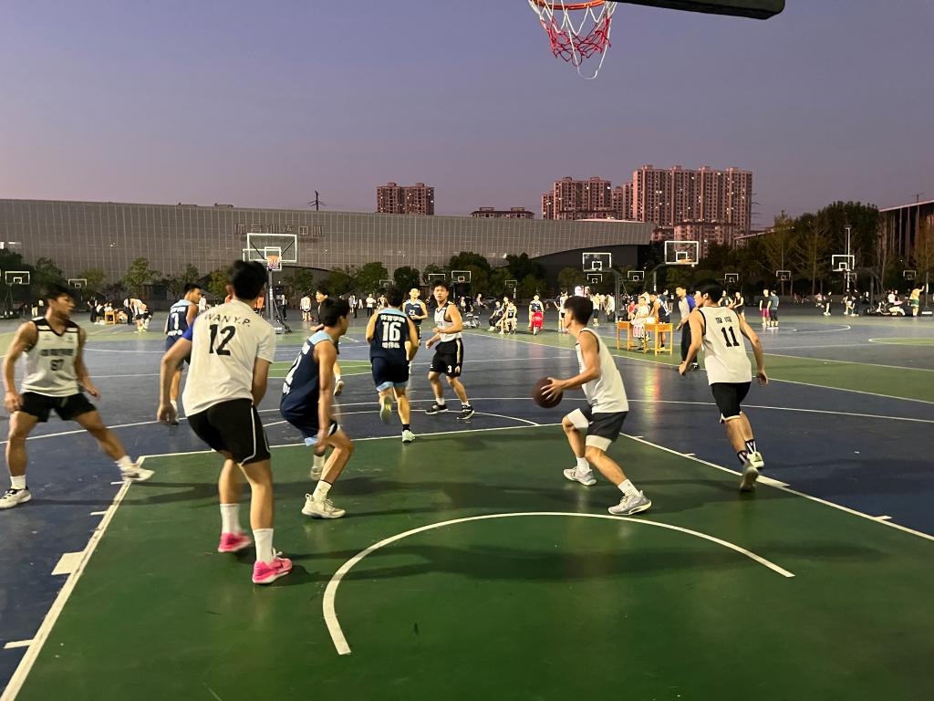 赛场上,新生们个个斗志昂扬,信心满满。随着裁判的一声哨响,双方队员迅速进入状态,展开了激烈的角逐。他们在球场上奔跑、跳跃、传球、投篮,每一个动作都充满了力量与激情。进攻方队员们配合默契,运球突破、传球助攻、精准投篮,一次次地冲击着对方的篮筐。防守方也毫不示弱,紧密盯防、积极抢断、顽强阻挡,努力守护自己的阵地。场下的观众们也被比赛的紧张气氛所感染,他们呐喊助威声此起彼伏,为自己支持的队伍加油鼓劲。
