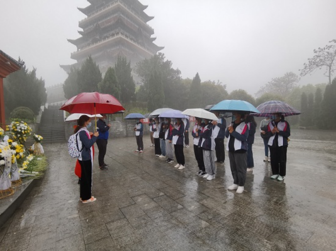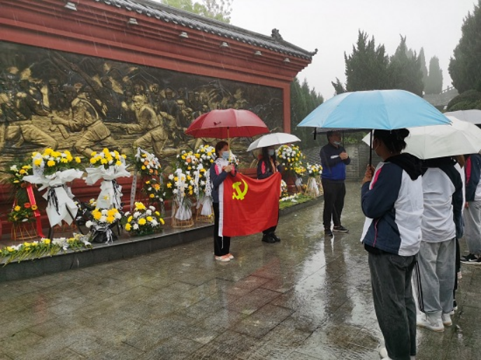 在烈士纪念墙前,大家冒雨整齐肃立,怀着沉痛的心情瞻仰烈士,并集体默哀三分钟,哀悼革命先烈,向革命烈士致敬。以此表达对烈士的崇高敬意,寄托对革命先烈的无限哀思。