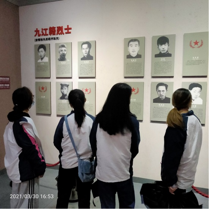 在烈士纪念馆内,66名九江籍或曾在九江战斗过的赣北英烈的光荣事迹深深震撼着大家。众多优秀的中华儿女不惜抛头颅、洒热血,用他们宝贵的青春和热血,谱写出可歌可泣的壮丽诗篇;用他们浩瀚的正气和崇高的理想,描绘出光彩夺目的宏伟画卷。
