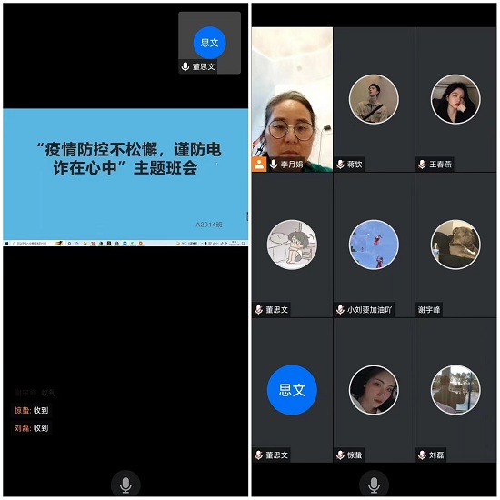 由于疫情防控原因,本次主题班会采取线上方式。各班班主任再次警醒同学们加强防诈骗安全意识,下载登陆国家反诈中心APP,同时结合社会的实际情况,警惕以疫情之名诈骗的注意事项,让学生提高防范意识,严防以疫情之名诈骗。