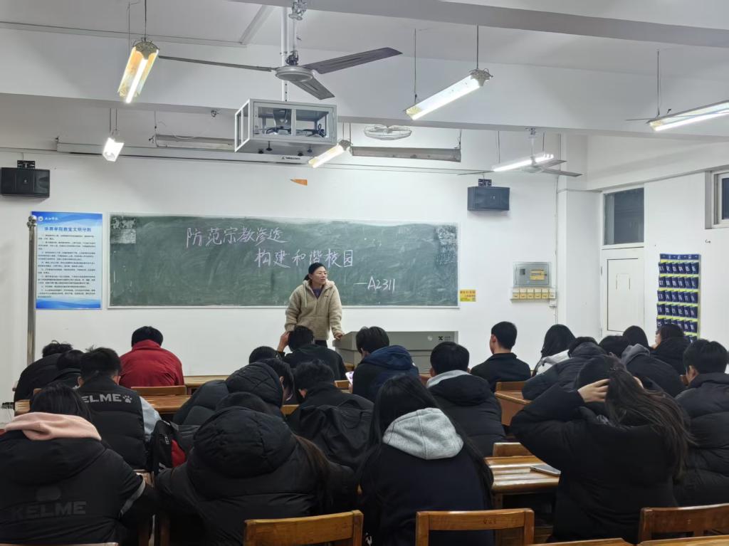 班会上,各班深入学习习近平总书记关于宗教工作的重要论述,讲解宗教与邪教的本质区别,重点阐述我国民族宗教政策以及教育与宗教相分离的法规要求。通过学习材料,教育引导同学们深刻认识到防范宗教渗透的紧迫性和重要性,主动防范和抵御宗教向校园渗透。